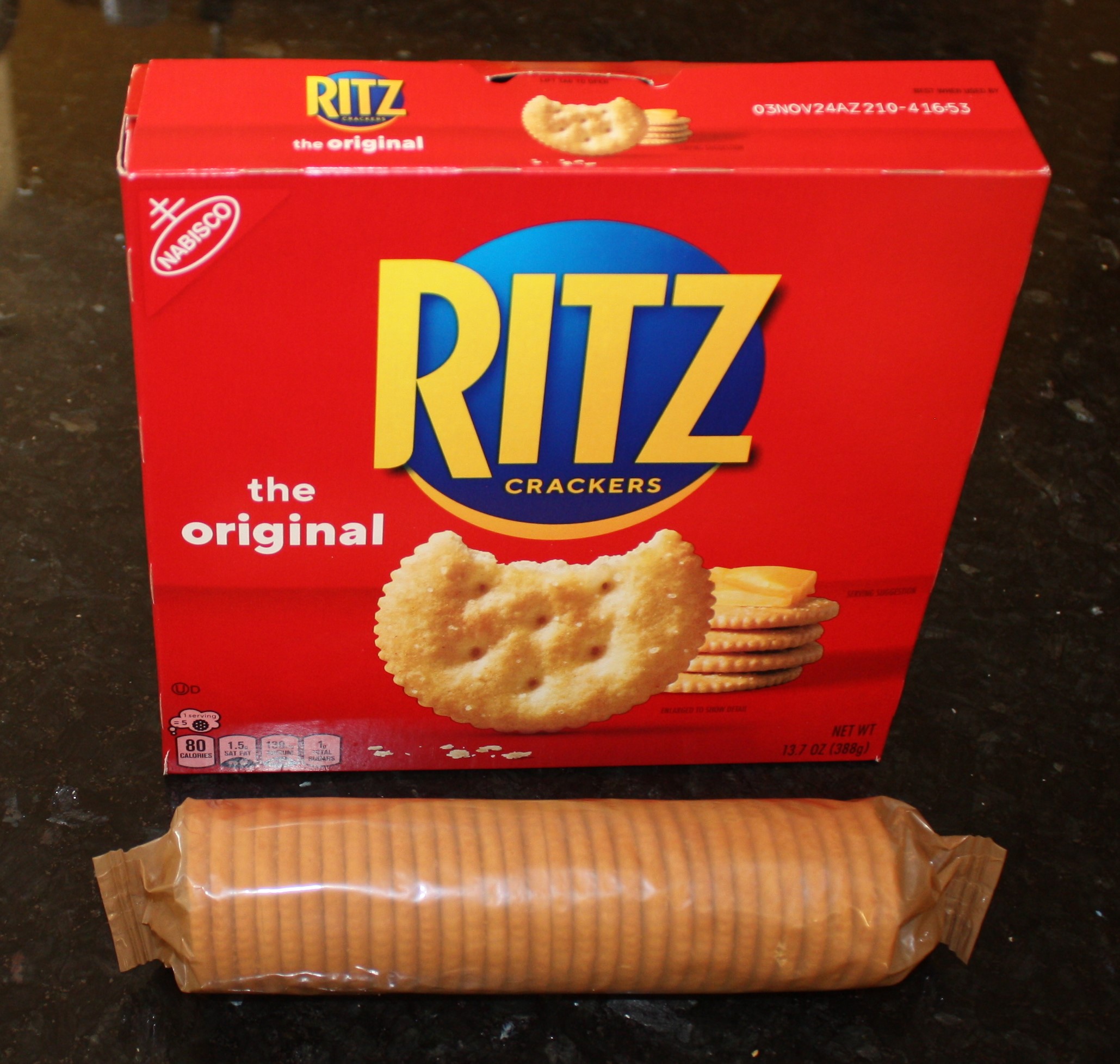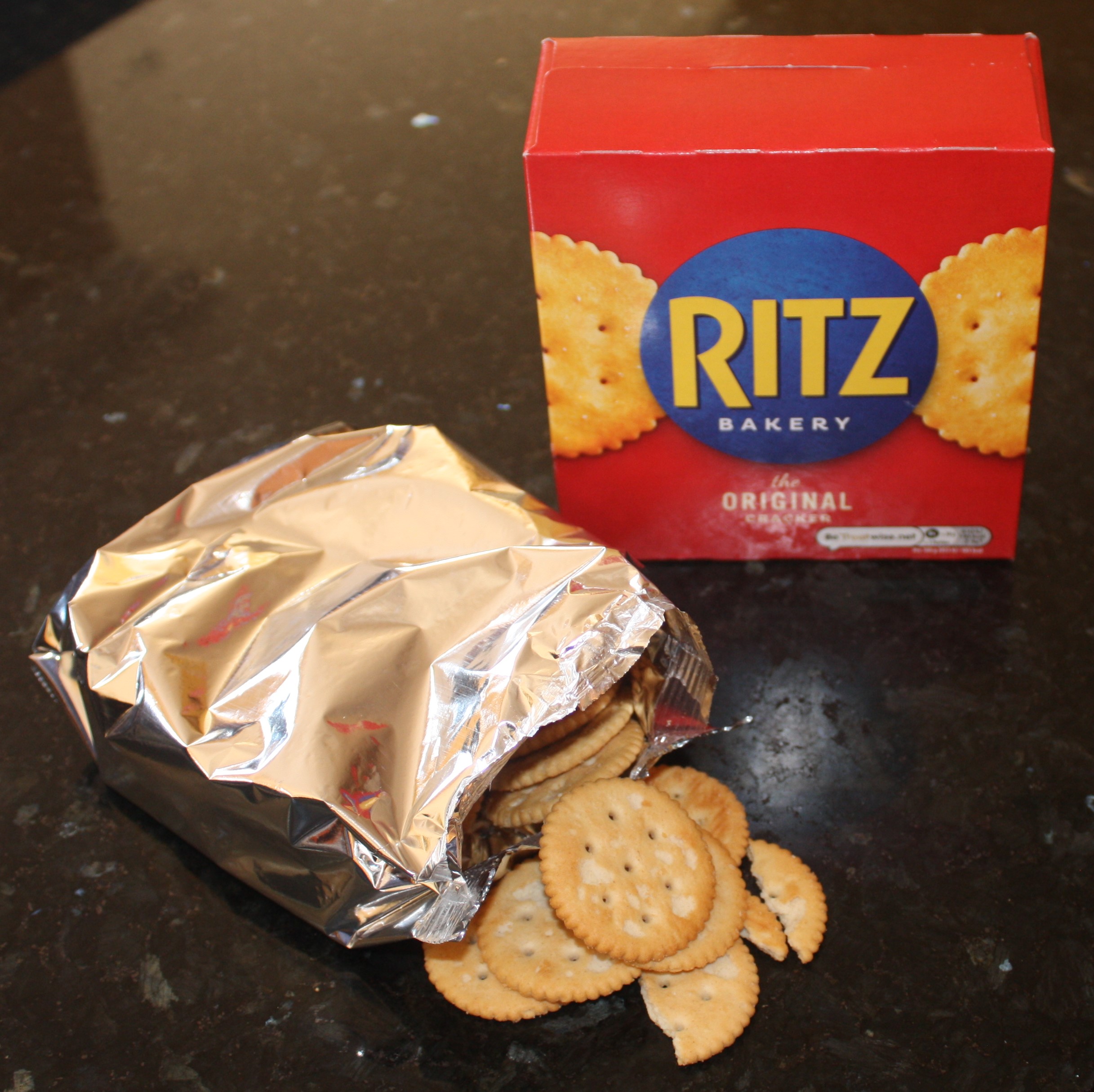 On a visit to the USA I was surprised to discover that Ritz are packaged differently there: the crackers are arranged in regular stacks, each stack individually wrapped in plastic to hold the crackers in place.